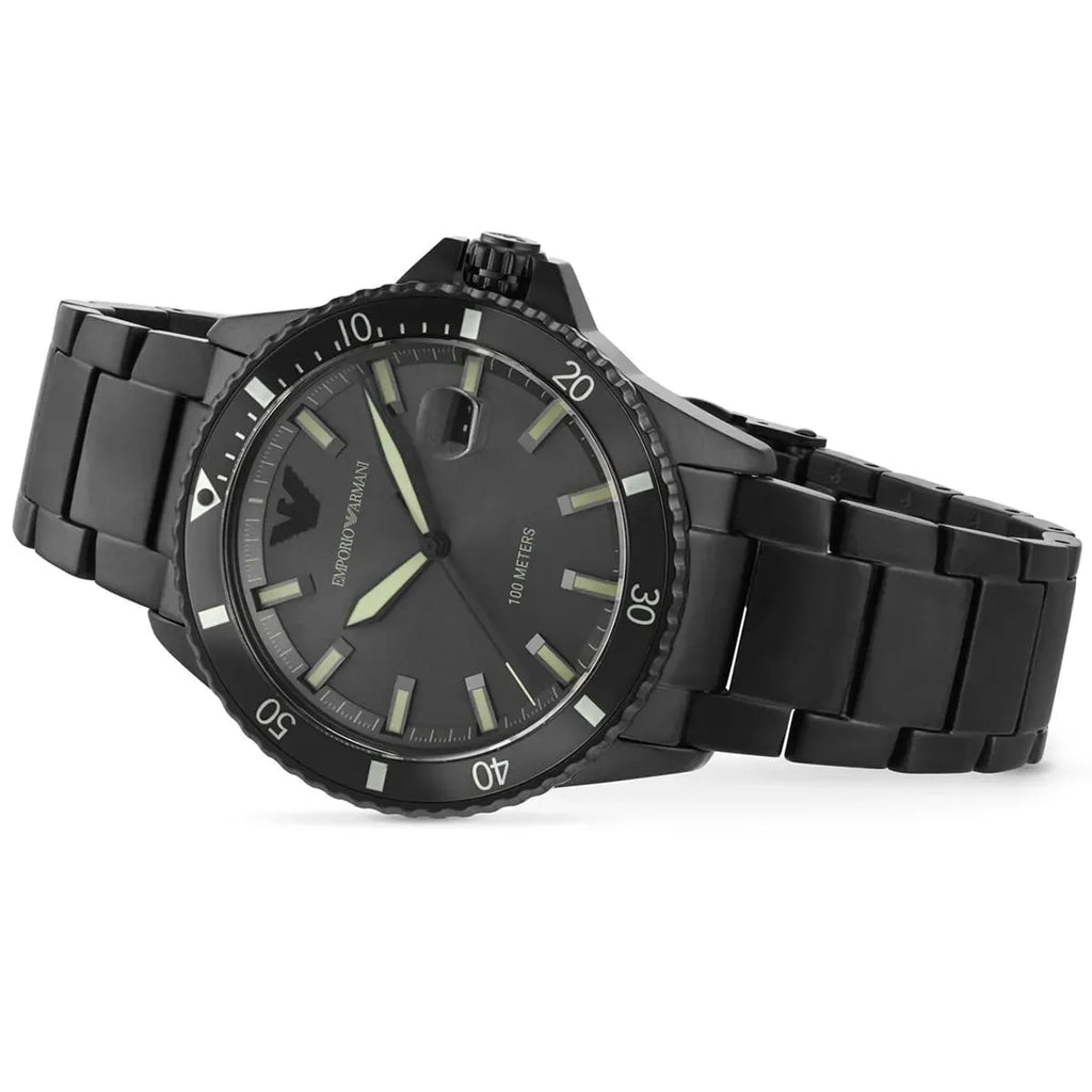 Emporio Armani AR11398 is an amazing and attractive Gents watch. Material of the case is Stainless Steel and the Grey dial gives the watch that unique look. 100 metres water resistancy will protect the watch and allows it to get submerged in the water for everyday usage including swimming, but not high impact water sports.