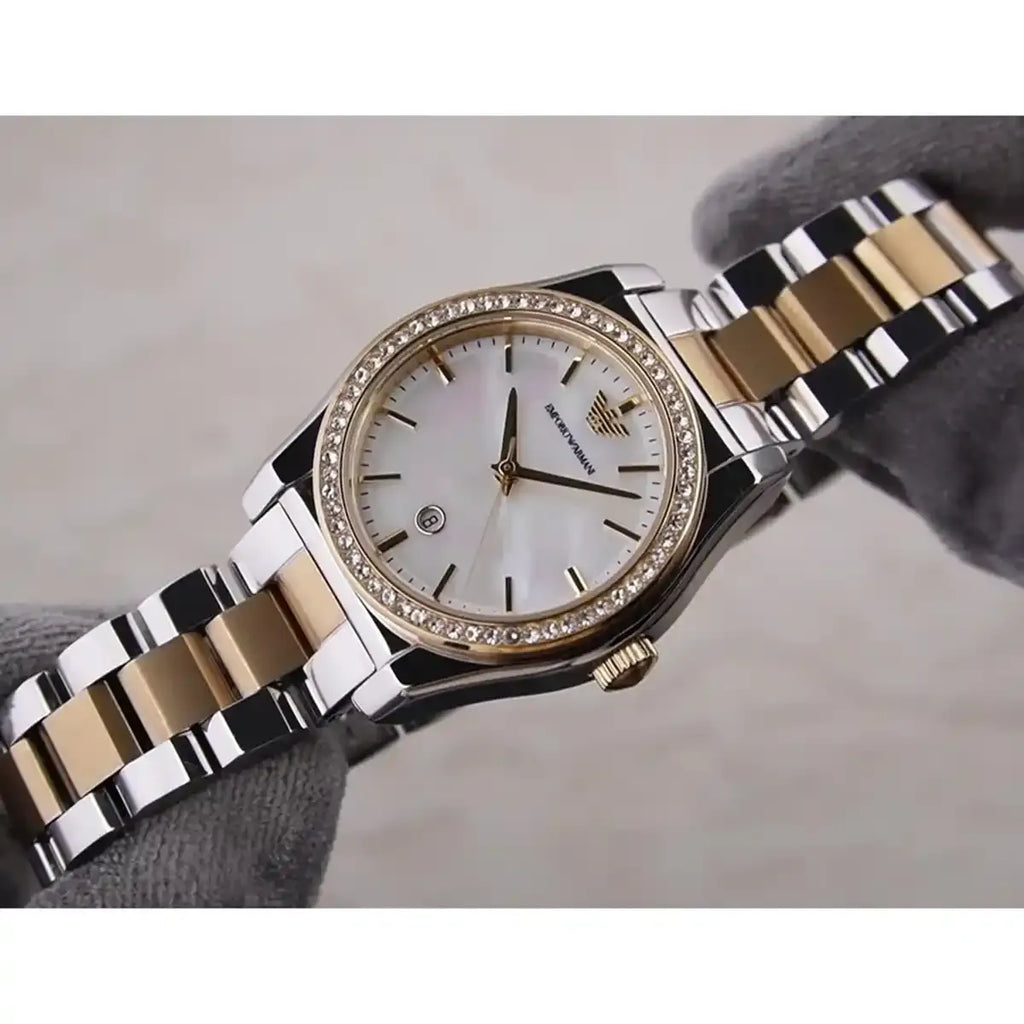 Emporio Armani Federica Mother of Pearl Dial Two Tone Steel Strap Watch for Women - AR11559