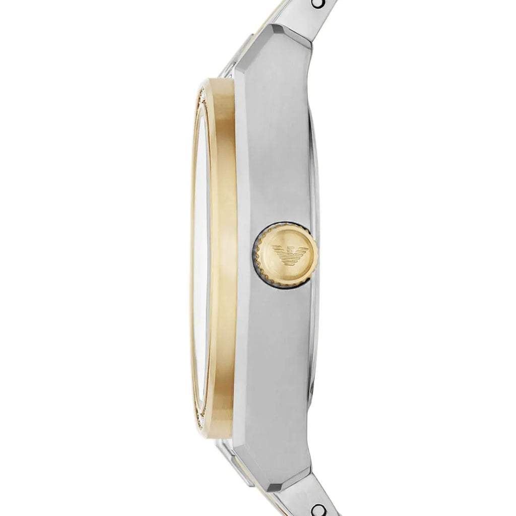 Elevate your everyday elegance with the Emporio Armani Federica, a timepiece that seamlessly blends sophistication with versatility. The luminous mother-of-pearl dial catches light beautifully, creating subtle shimmer with every glance, while the two-tone stainless steel bracelet transitions effortlessly from boardroom to evening occasions. Precision-engineered for reliability, this women's watch combines Italian design heritage with refined craftsmanship. Whether you're dressing up or keeping it casual, the Federica AR11559 is the refined accessory that completes any look with understated luxury and timeless appeal.