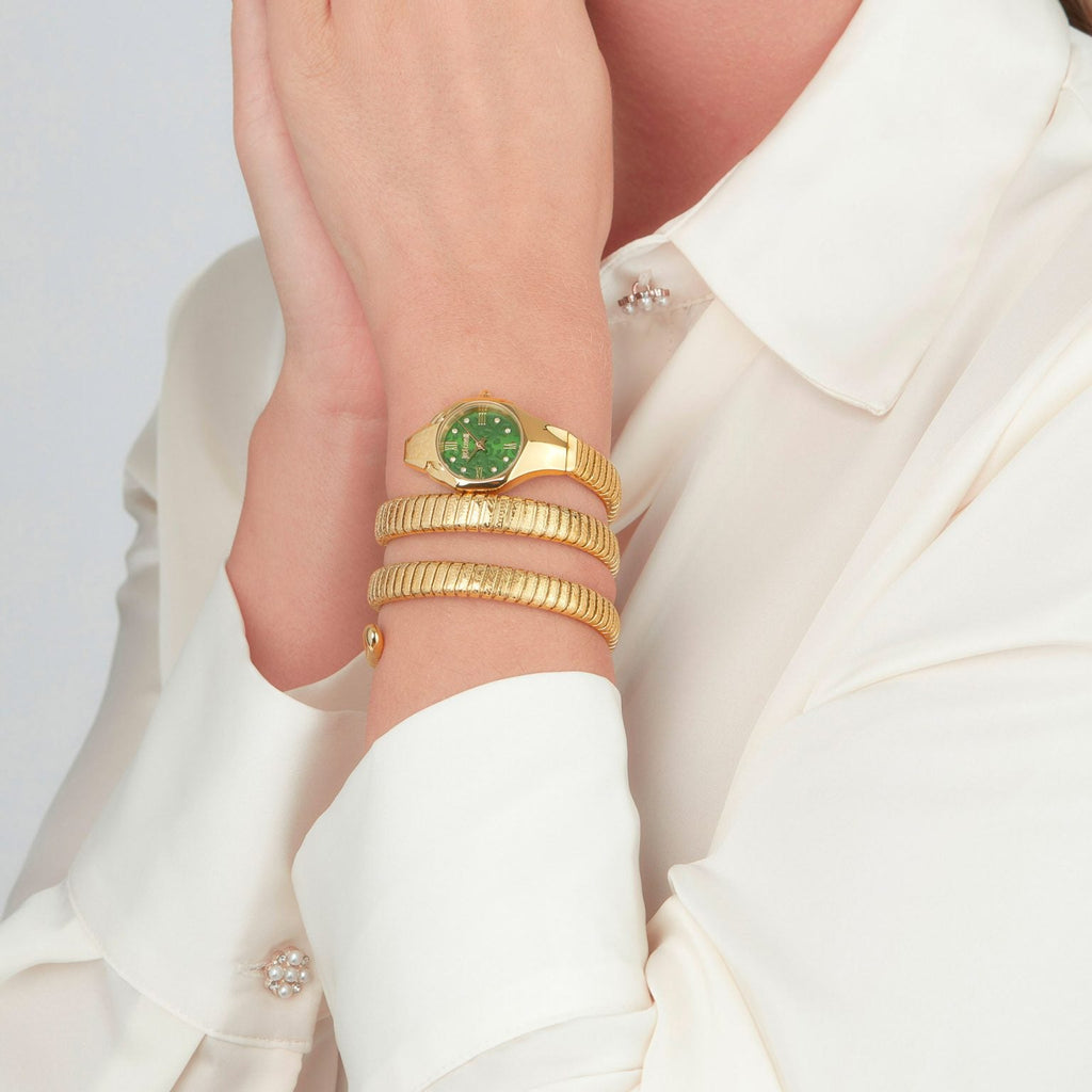Just Cavalli Ravenna Green Dial Gold Steel Strap Watch for Women - JC1L271M0035