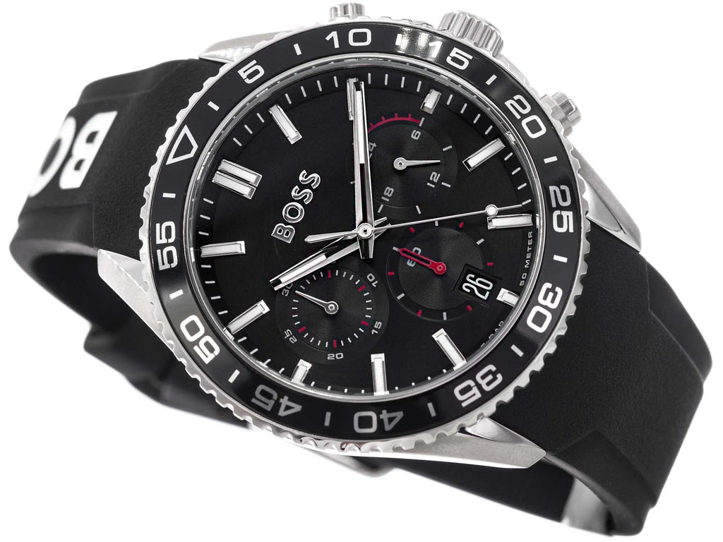 Hugo Boss Runner Chronograph Black Dial Black Silicone Strap Watch for Men - 1514141