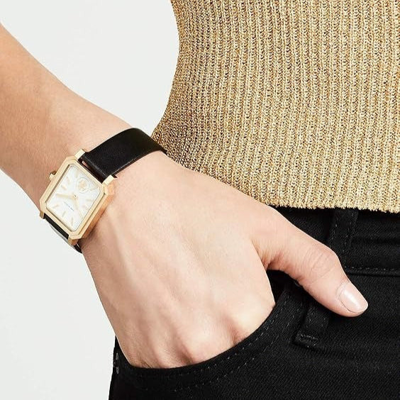 Elevate your style with the Tory Burch Robinson watch, featuring a sleek white dial paired with a classic black leather strap. Designed for women who appreciate timeless elegance, this watch seamlessly blends sophistication and everyday wearability. The durable leather strap ensures comfort, while the clean dial offers easy readability. Perfect for both professional and casual settings, this timepiece adds a refined touch to any outfit.