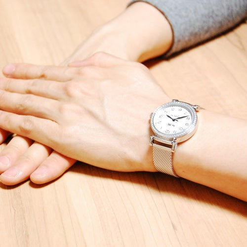 With its round case, crystal-set bezel and elegant mesh bracelet, this refined watch has a feminine, timeless look. It was crafted exclusively for Coach by a world-class watchmaker to keep flawless time.