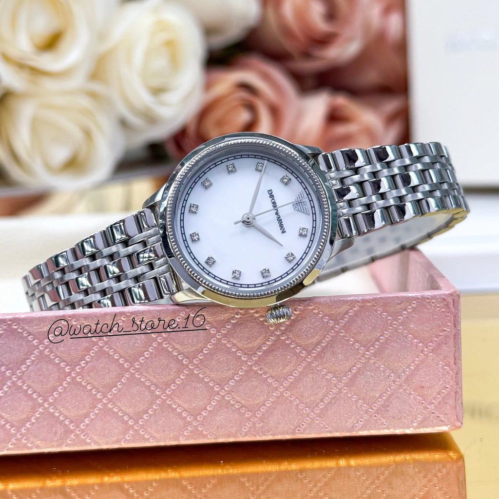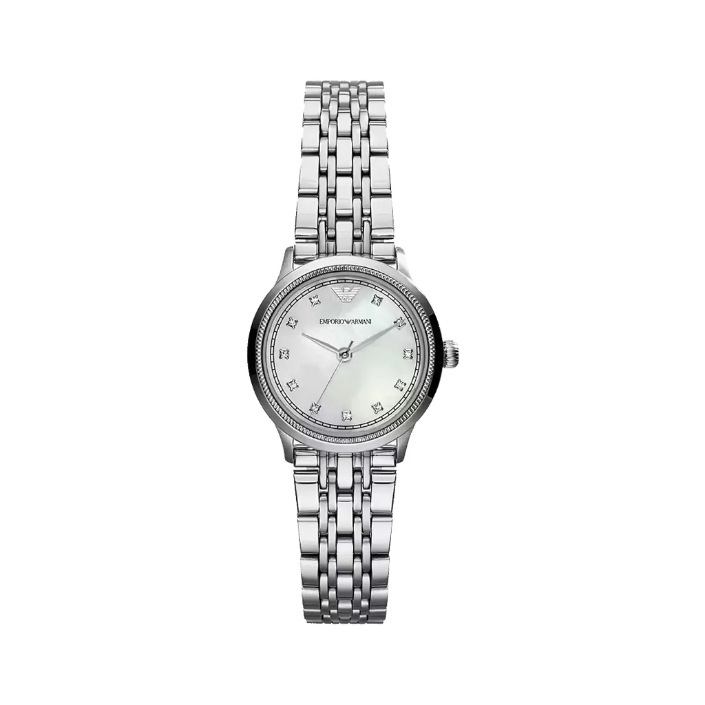 Elevate your everyday elegance with the Emporio Armani Alpha AR1803, a sophisticated timepiece designed for the modern woman. This stunning watch features a luminous mother-of-pearl dial that catches the light beautifully, paired with a sleek silver steel bracelet that complements any outfit. The refined design balances minimalist aesthetics with timeless luxury, making it perfect for both professional settings and casual occasions. With its precision quartz movement and durable construction, this Italian-crafted watch delivers reliable performance alongside undeniable style. Discover why discerning women choose Emporio Armani for watches that make a statement.