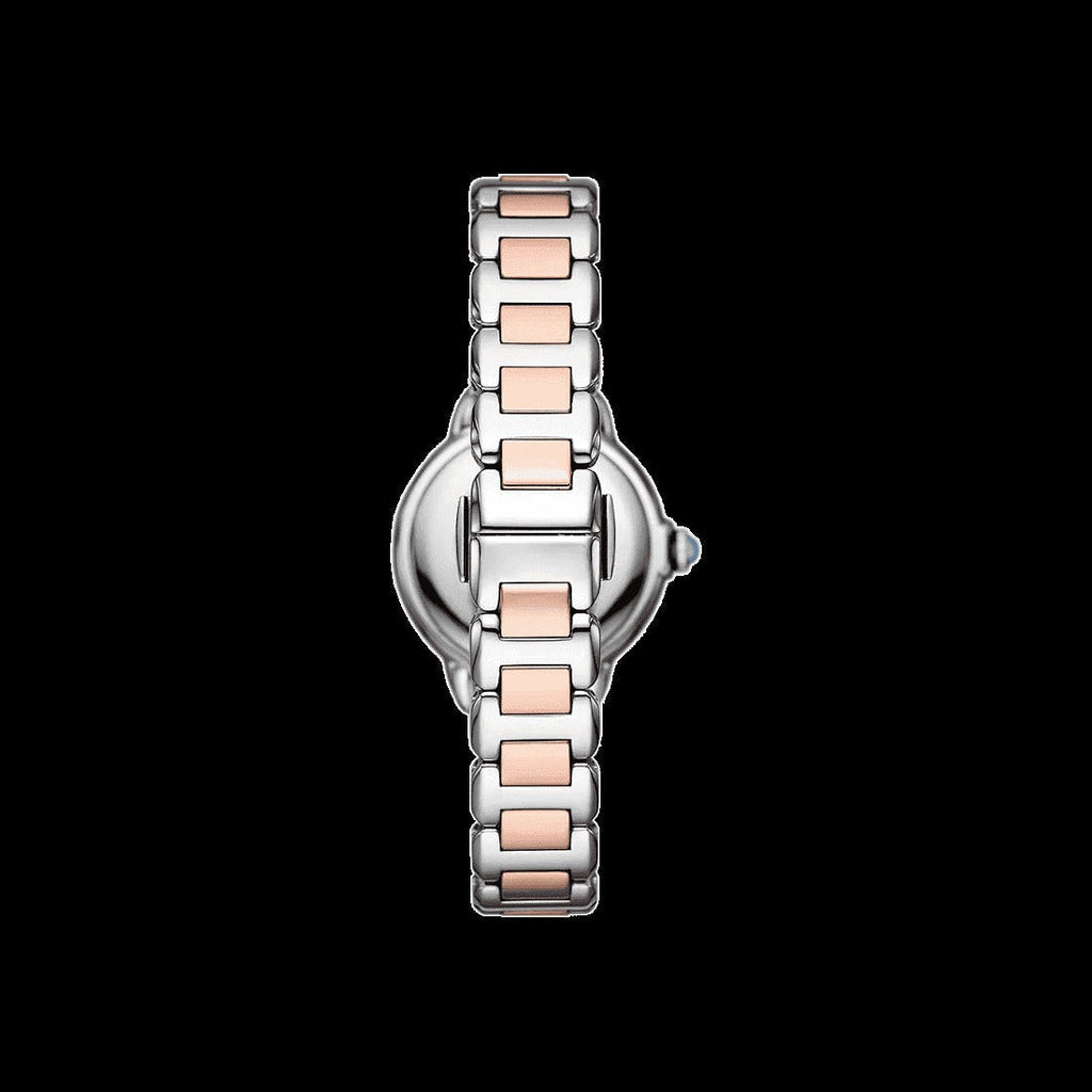 - Emporio Armani's 32mm watch features a blue sunray dial, three-hand movement and two-tone stainless steel bracelet