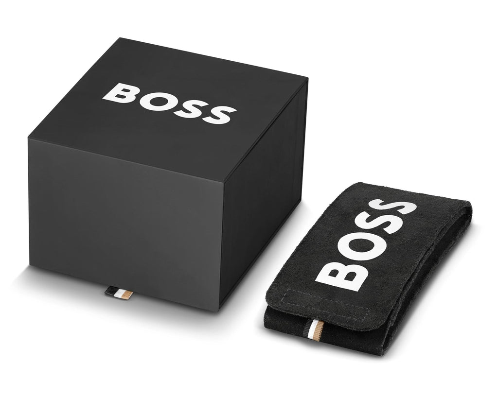 Discover the Boss Strike men's watch - 1514175. Featuring a handsome silver-tone steel bracelet , this watch boasts a 41mm round gray case crafted from robust steel. The case houses a sleek analog dial with a date function for added convenience. The watch is powered by a quartz movement, ensuring precision and durability. The bracelet is secured with a deployment clasp for a secure fit. Water-resistant to 50m (5 ATM), it can withstand light immersion. Add a touch of elegance to your wrist with this Boss watch . The protective mineral crystal on the dial provides a lasting finish to this horological gem.