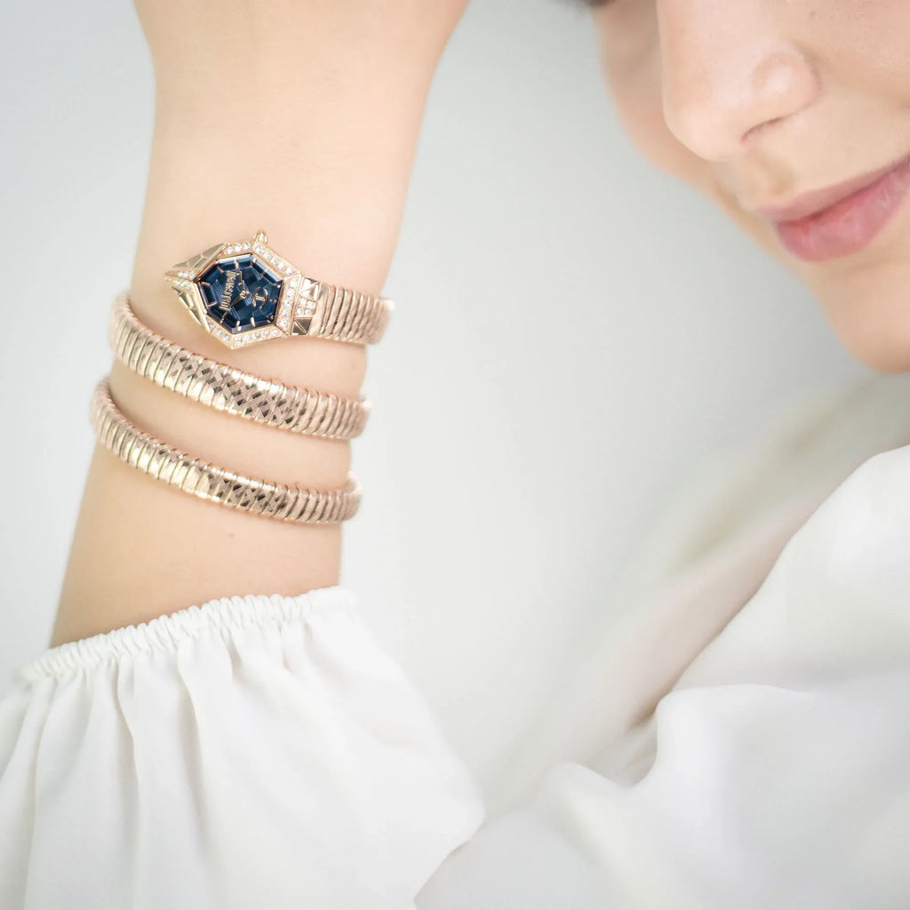 Just Cavalli Mesmerizing Blue Dial Rose Gold Steel Strap Watch for Women - JC1L304M0045