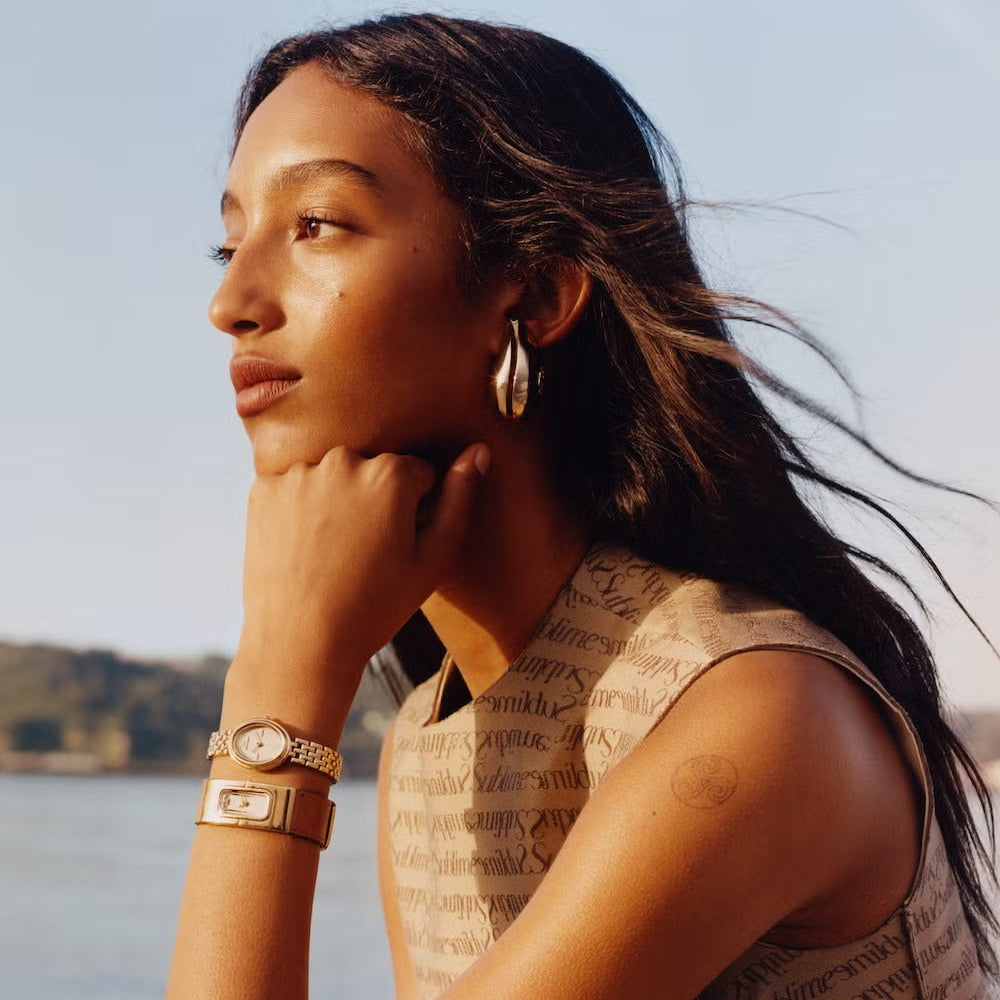 The Tory Burch Oval Watch features a sleek gold stainless steel design that elevates any outfit, making it perfect for both casual and formal occasions. Crafted from high-quality stainless steel, this watch offers exceptional durability and resistance to everyday wear, ensuring long-lasting elegance and functionality. With its timeless oval shape and refined gold finish, this watch seamlessly complements various styles, appealing to fashion-forward women who appreciate sophistication.
